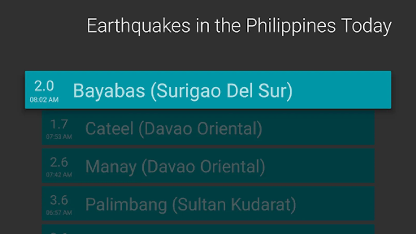 The PH Weather And Earthquakes app displays weather updates from PAGASA's (Philippine Atmosphereic Geophysical and Astronomical Services Administration) Project NOAH and earthquakes, tsunami and volcanic activity updates from PHIVOLCS (Philippine Institute of Volcanology and Seismology).