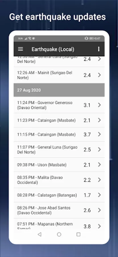 A worldwide earthquake list is also available based on data from U.S.G.S (U.S. Geological Survey).