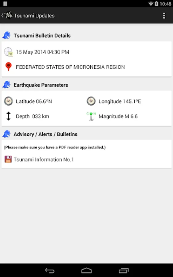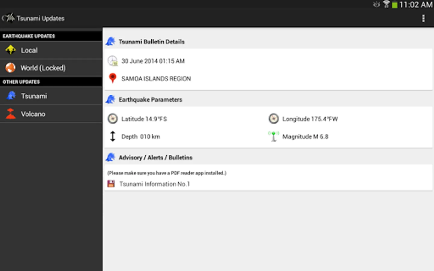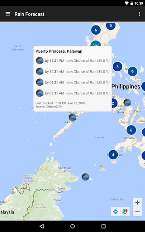 The PH Weather And Earthquakes app displays weather updates from PAGASA's (Philippine Atmosphereic Geophysical and Astronomical Services Administration) Project NOAH and earthquakes, tsunami and volcanic activity updates from PHIVOLCS (Philippine Institute of Volcanology and Seismology).