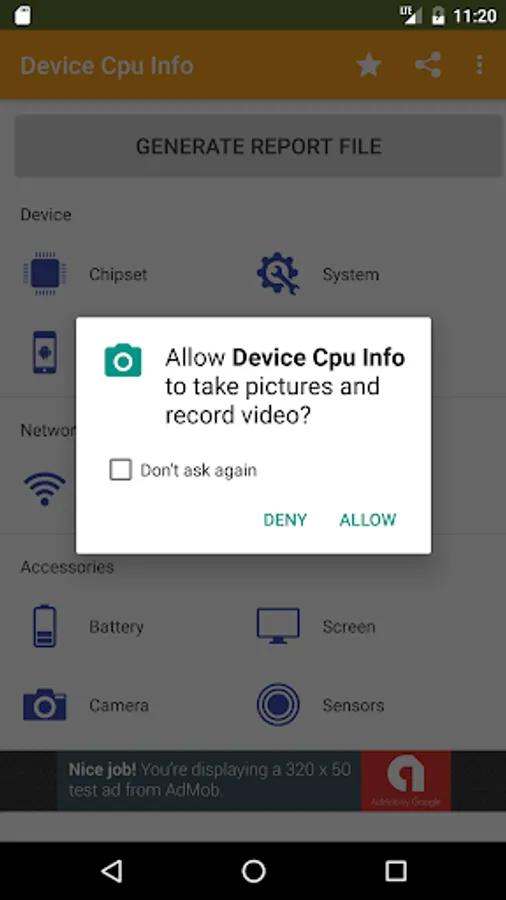 CPU Information • Sensors and their sensitivity: Accelerometer, Geomagnetic Rotation, Gravity, Gyroscope. • Battery Information: Detect capacity and condition of battery. • Export Report: After you checked your devices, you may generate a device report. This report is in html format. You can share/send/store this report. • Android Device ID, Sim Serial Number, Phone Number, Ip Address, MAC Address: Sometimes it is necessary to submit to your IMEI/MAC number. You can easily get this types of information easily. Report Your Android System We are constantly working hard on making the “Android System Report” app better and more useful for you. We need your constant support to get going. Please feel free to email us for any queries/suggestions/problems or if you just want to say hello. The report format will be upgraded in time. • READ_PHONE_STATE permission is used, to access and report your system details. Without this permission there may be some problems.