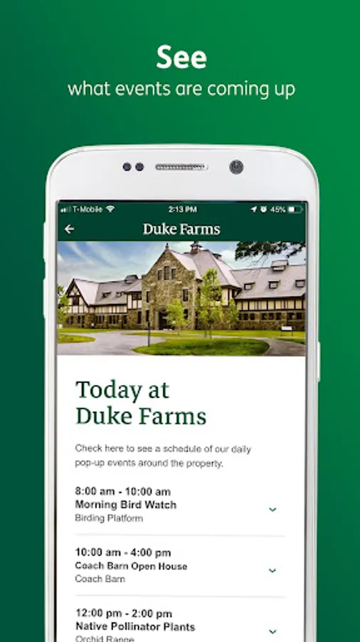 This app is your guide to exploring the beautiful grounds at Duke Farms. Discover unique property highlights, interesting facts, and upcoming events. Whether you have an hour or all day, you can experience the uniqueness of Duke Farms.