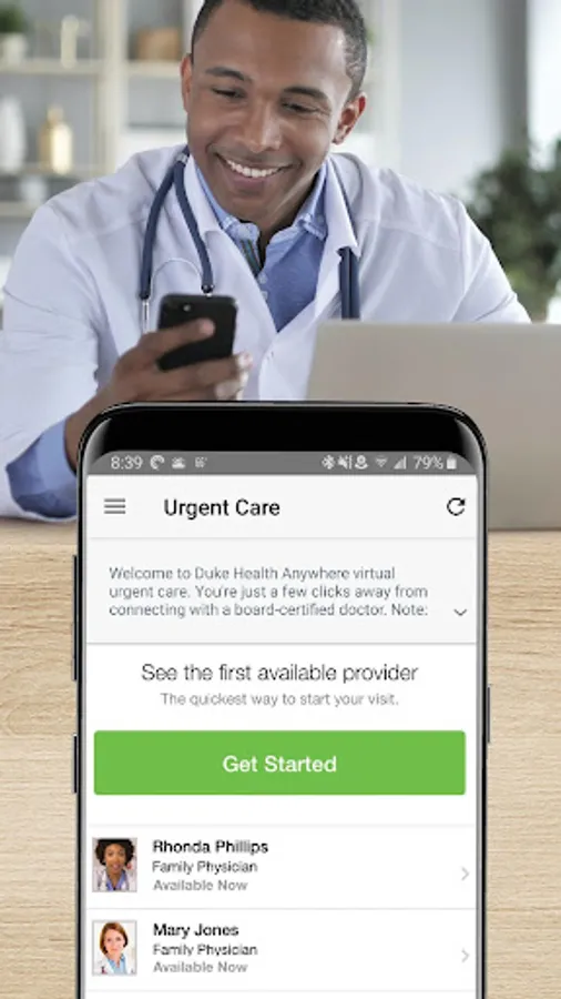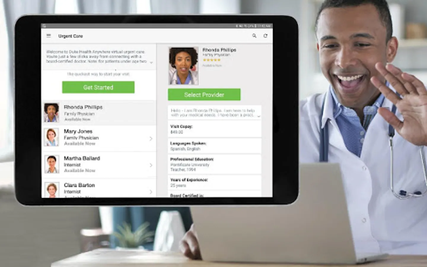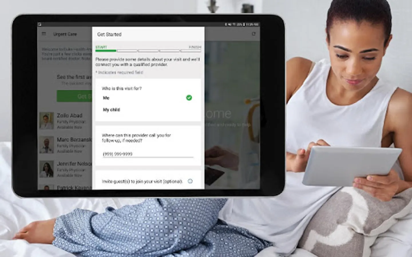 Get quick, convenient urgent care through your mobile device – day or night – with Duke Health Anywhere. Next time you’re feeling sick have a live video visit with a board-certified doctor who will assess your condition, offer a diagnosis and treatment plan, and if necessary prescribe medication. Video visits are ideal for common urgent care needs including cold and flu symptoms, allergies, rashes, and minor infections.