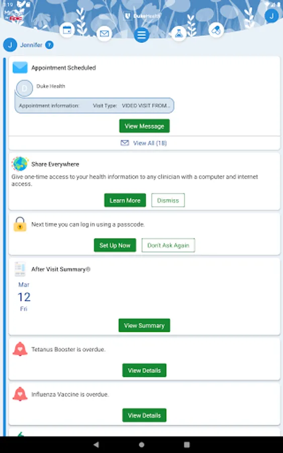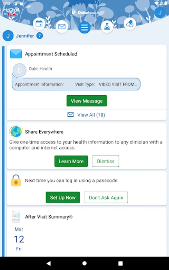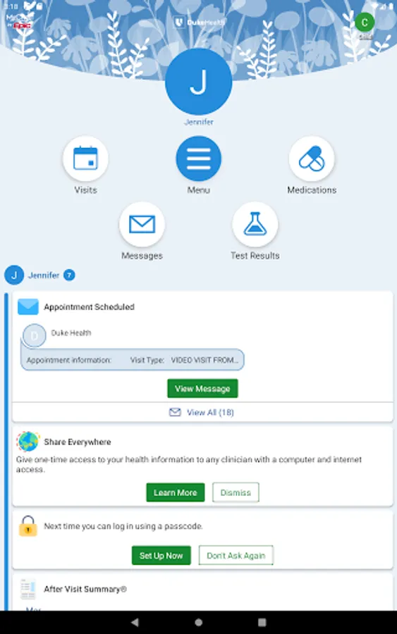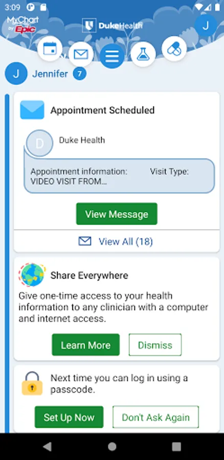 You will need to have an active account to use all the features of the My Duke Health app. If you do not have an existing Duke MyChart account, you can register on our website: https://www.dukemychart.org/home/accesscheck.asp