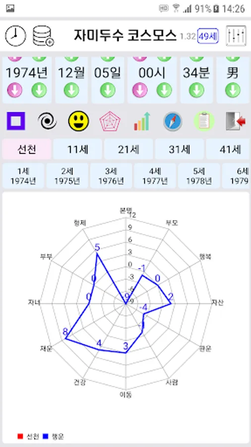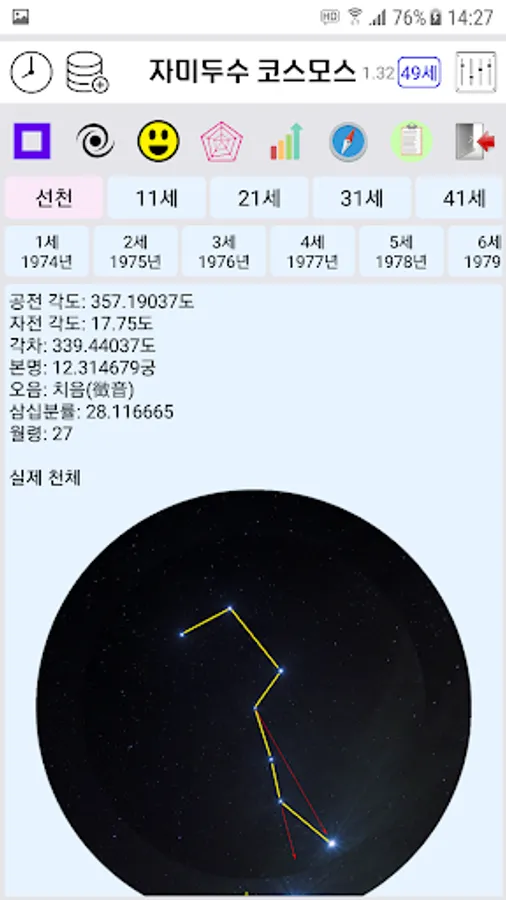 북두칠성의 좌전(左轉)을 통하여 천문(天文)의 변화를 포착하고 그것을 그대로 자미두수에 적용한 전대미문의 앱