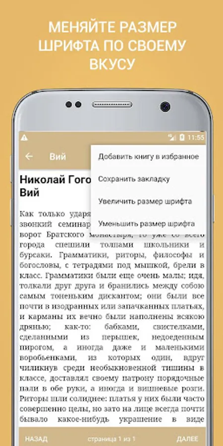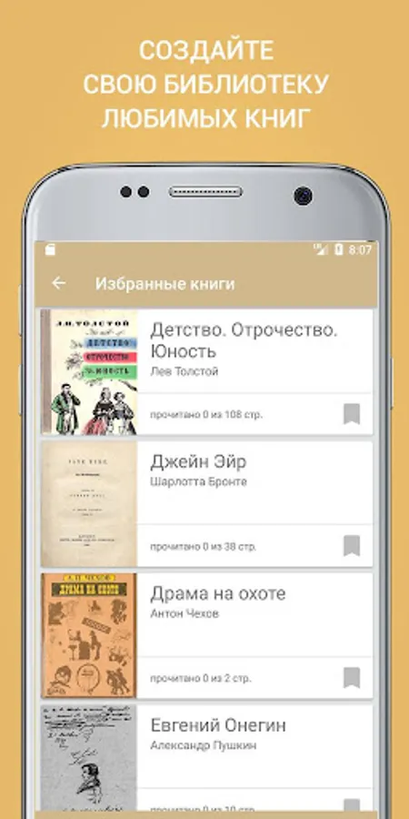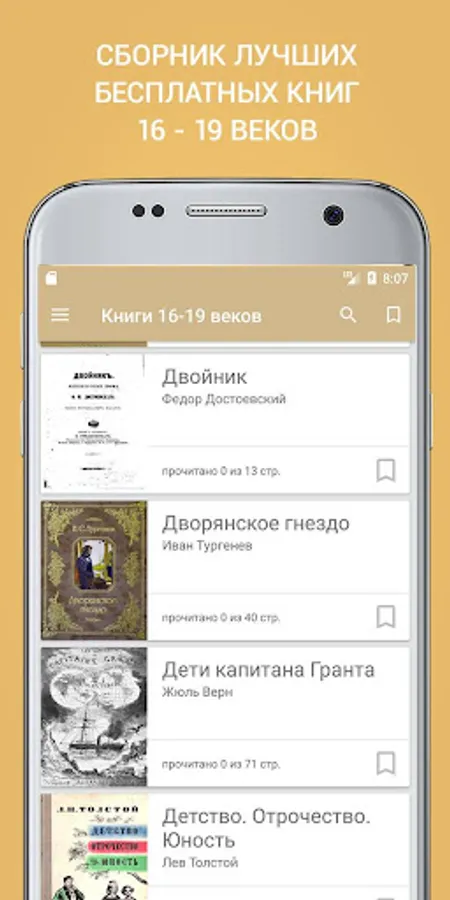 The application "The best books of eras: from baroque to enlightenment" allows you to maintain a list of selected books, use the convenient search by title and author. You can read all the books in the collection for free and in their entirety in the full author’s version. The application remembers your current reading progress and allows you to return to the last page quickly and conveniently, and you can also change the font size to fit your eyes.