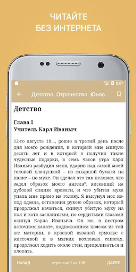 Books collected in this collection are absolutely free to read, do not have trial versions and other tricks. The application does not require a permanent Internet connection, the selected book is downloaded only once and does not consume more traffic. You can start reading full versions of books immediately and offline! The list includes the following works:
