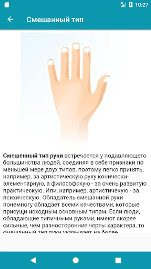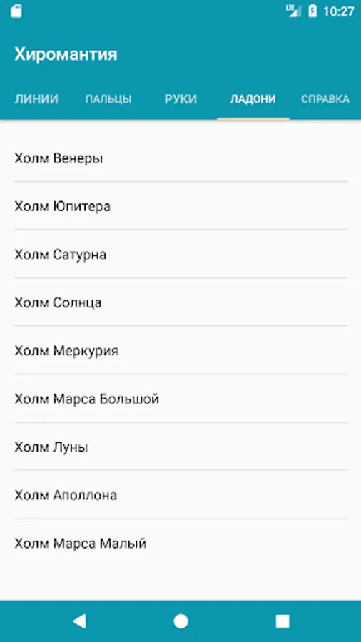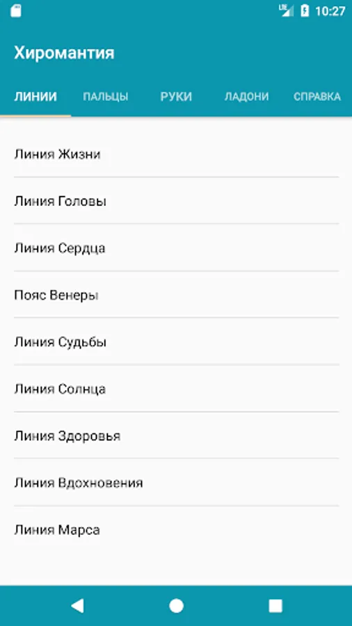 Palmistry - this is one of the oldest and most popular systems of divination based on the reading of the lines and shapes of palms, the external appearance and the hand back of the hand. According to palmistry, there is much to predict the future of a person in his hand. In this application, we collected detailed information that will help you to use palmistry in everyday life: