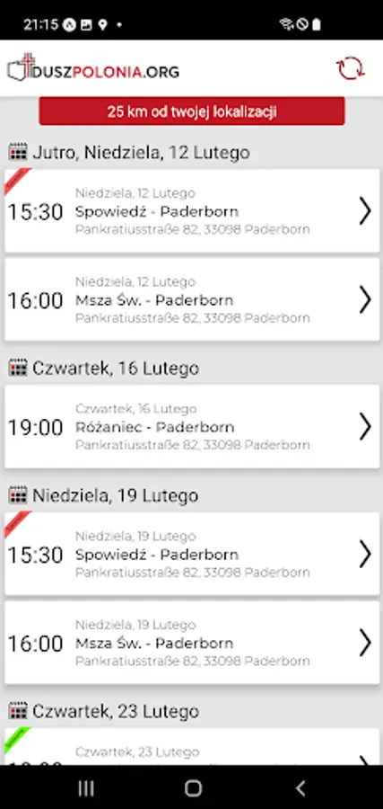 The Duszpolonia.org mobile application, which provides up-to-date information on Holy Masses in Polish outside the country.