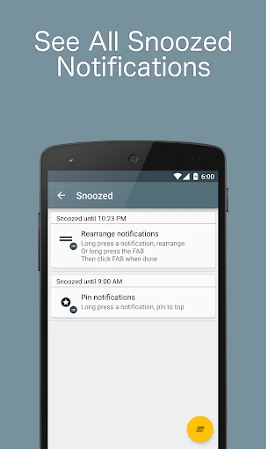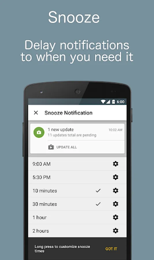 Snooze a notification that is better suited for a later time, or as a reminder.