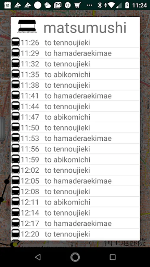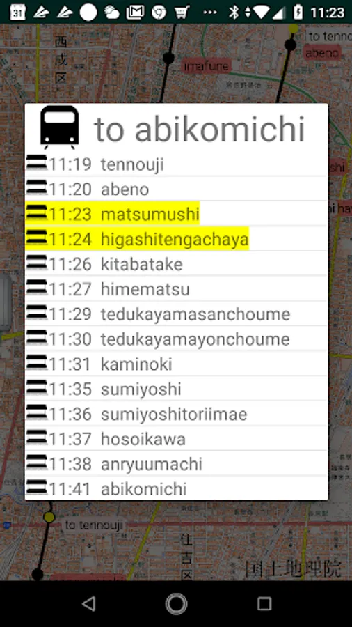 This application displays the position of the train running follows the timetable in a superimposed manner on the map.