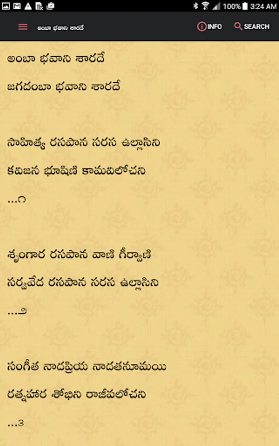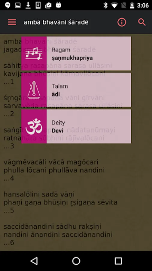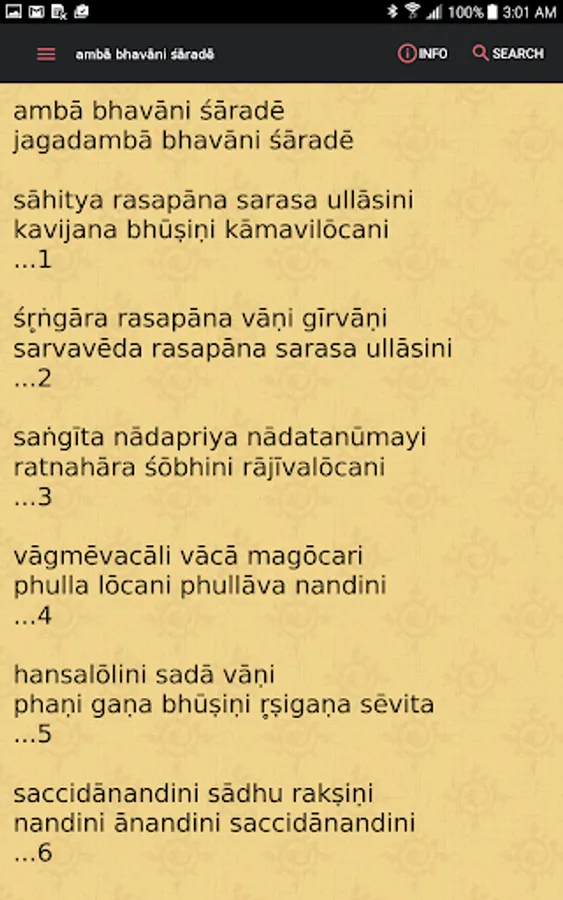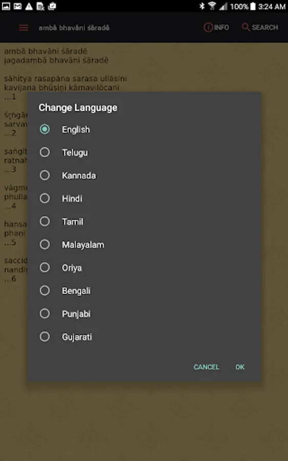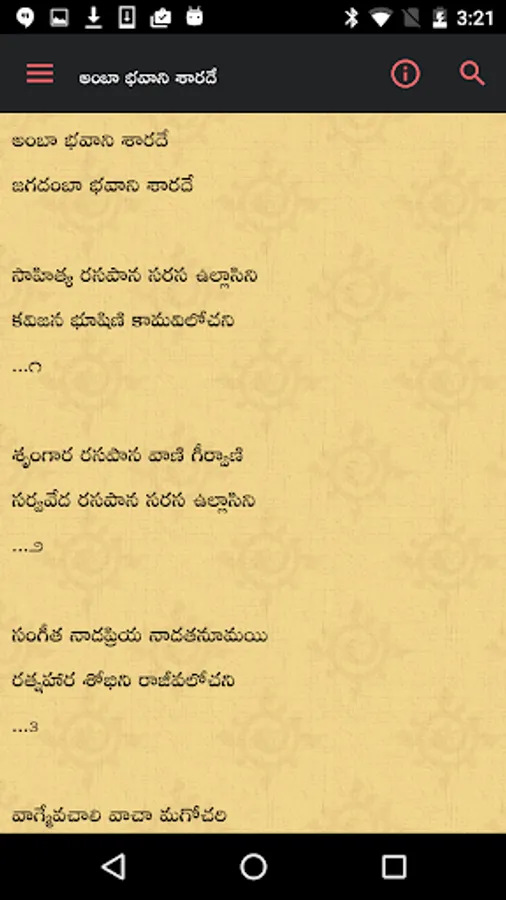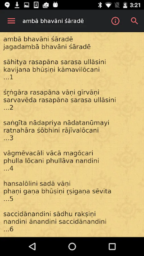 The app is preloaded with all lyrics of bhajans composed by Sri Swamiji and Jayalakshmi Mata, His mother and Guru. The text for all bhajans is transliterated into 10 languages: English, Telugu, Kannada, Hindi, Tamil, Malayalam, Oriya, Bengali, Punjabi, Gujarati.