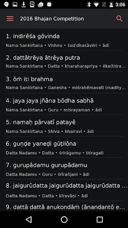 A Bhajan is a devotional song. His Holiness Sri Ganapathy Sachchidananda Swamiji has written and composed thousands of bhajans on various deities and philosophical songs. This app aims at recording all bhajans sang by Sri Ganapathy Sachchidananda Swamiji.
