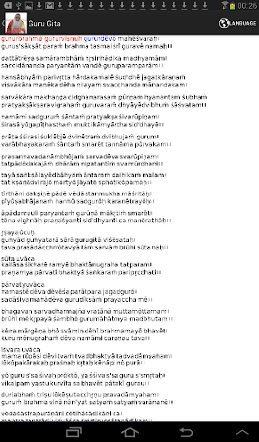 Speaking about the greatness of Guru Gita, Sri Swamiji once said, "Guru gita does not discriminate on the basis of caste, creed, race, country or sex. it belongs to everybody. Sadguru's grace is necessary to achieve spiritual upliftment. In order to obtain Guru's grace, it is imperative for one to understand the principie of Guru. There is no treatise more useful to achieve this than the Guru Gita".