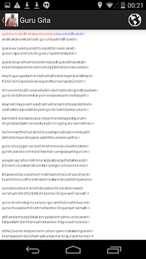 Sri Swamiji, the embodiment of compassion has Himself chanted the sacred verses of Guru Gita in this album it comes as a panacea at a time when the world is passing through very difficult times. It brings you nearer to your Guru. We urge everyone- especially today's youth- to listen to and chant these sacred verses every day. May the grace of Sadguru help create a healthy society.