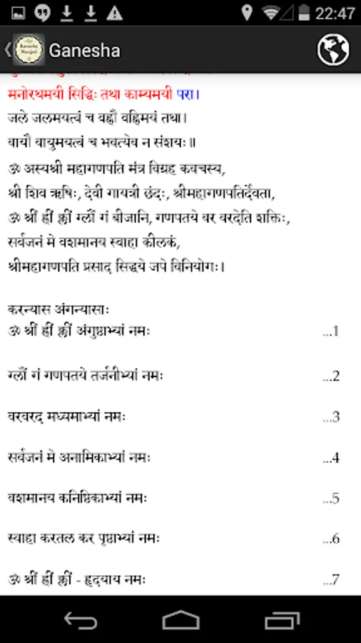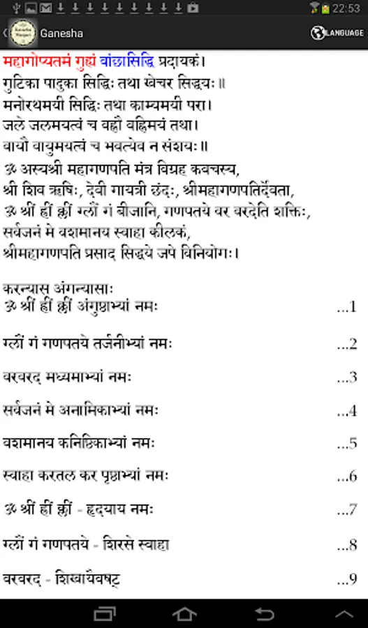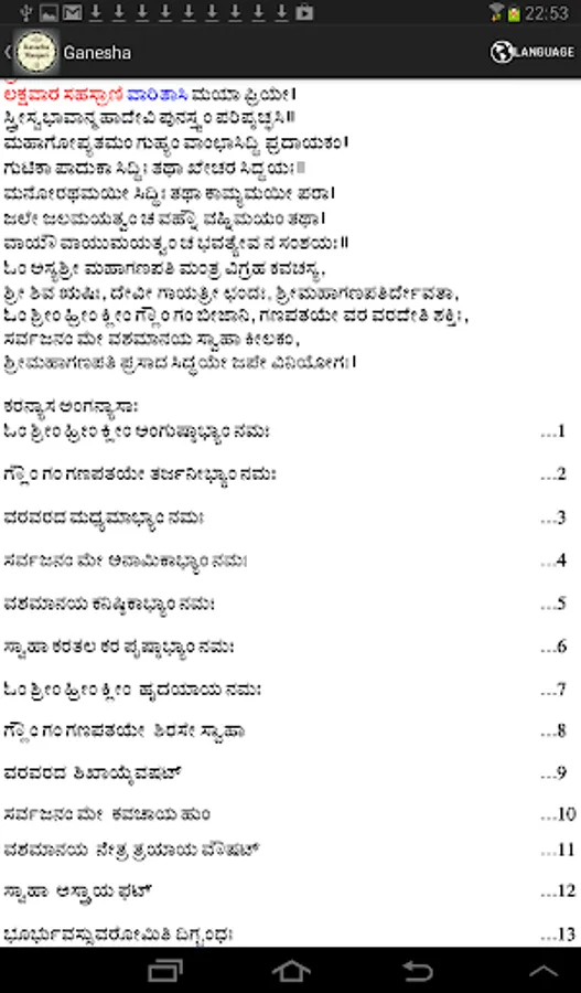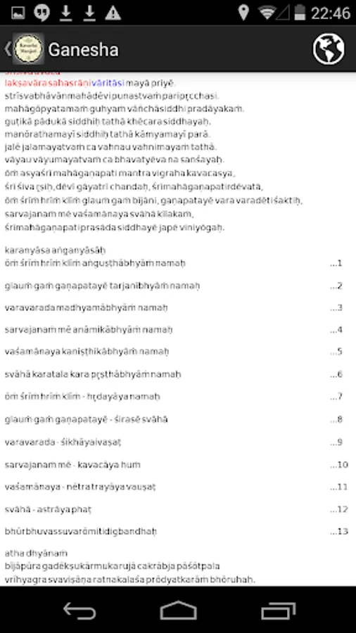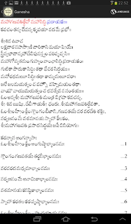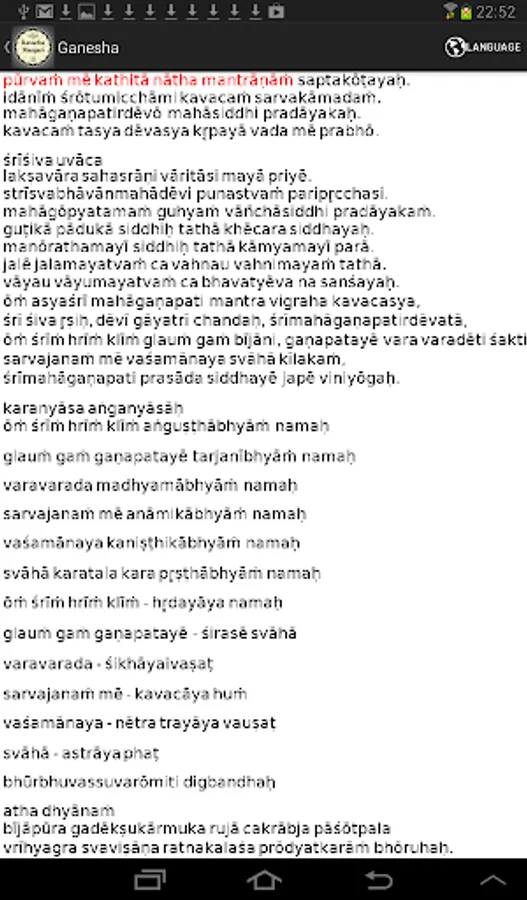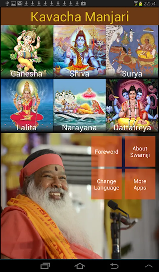 The app has embedded audio of the Kavacha Manjari album by His Holiness Sri Ganapathy Sachchidananda Swamiji chanted in a very authentic powerful spiritual method and accompanied by carefully selected music bits that enhance the listening experience.