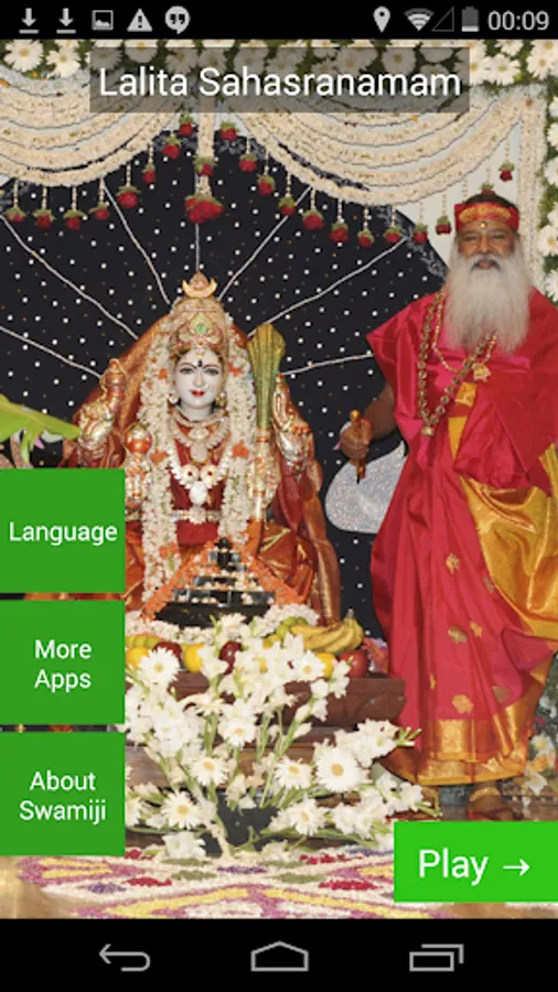 The Divine voice of His Holiness Sri Ganapathy Sachchidananda Swamiji extols the glory of Mother Goddess as He recites and sings the sacred text of Sri Lalita Sahasranama in this App.