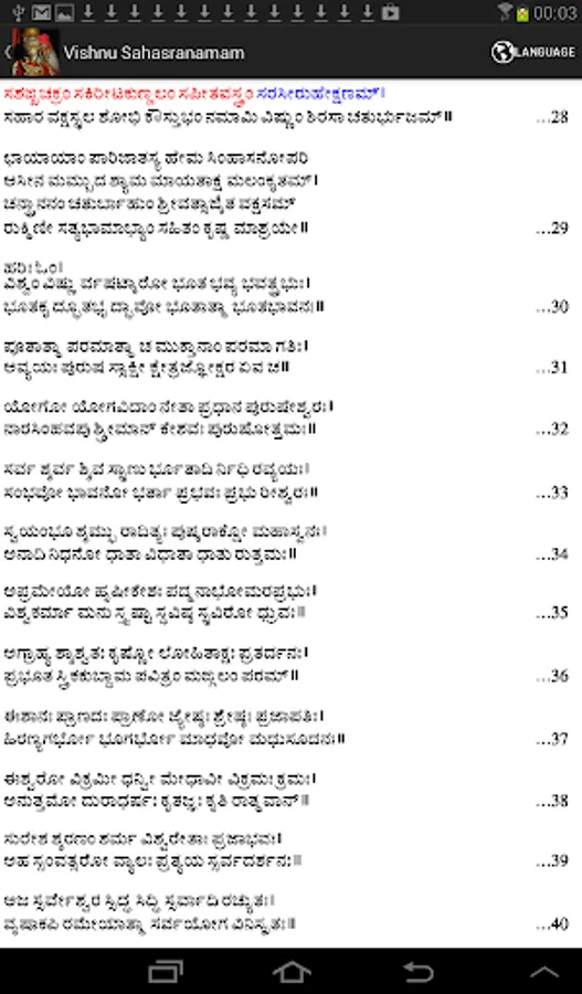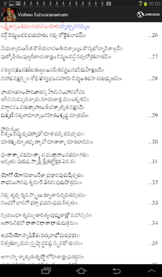 entire Vishnu Sahasranamam in English, Telugu and Kannada languages.
