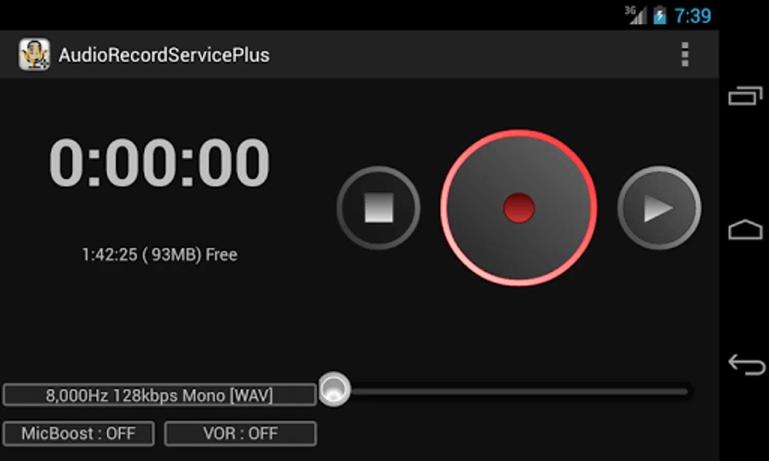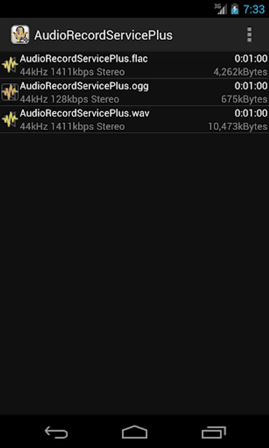 This application is a voice recorder to record in WAVE(PCM) / FLAC / OGG VORBIS format audio input from the MIC.