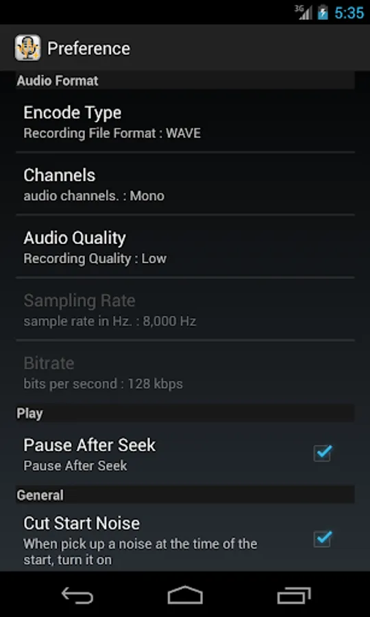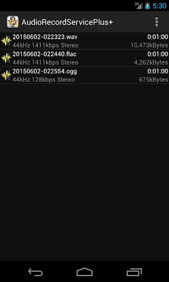 This App is a voice recorder to record in WAVE(PCM) / FLAC / Ogg Vorbis format audio input from the MIC.