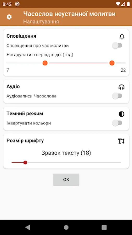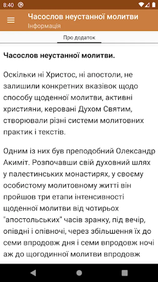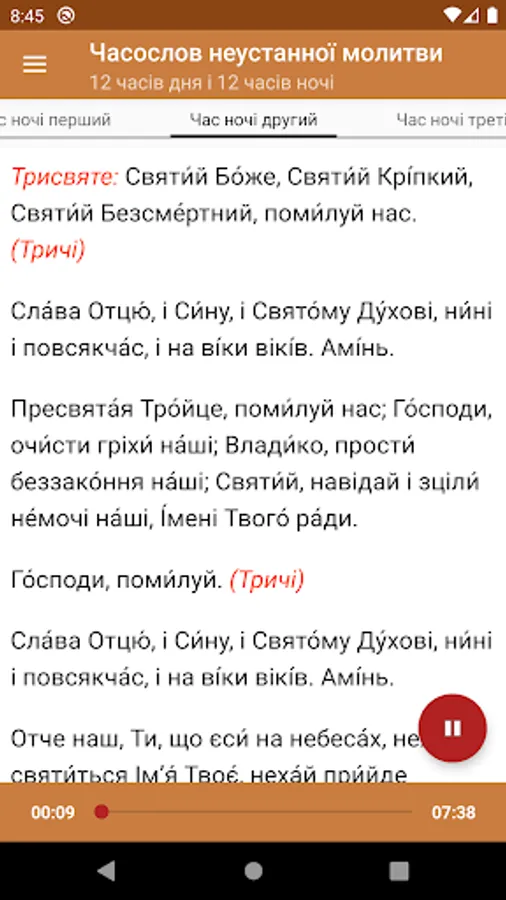 You can download audio files in the application to get better into the rhythm of prayers. They can be useful, for example, when traveling by car. So far, only 24-hour magazines are available in audio format. Sounding the rest of the time in the cooking process.