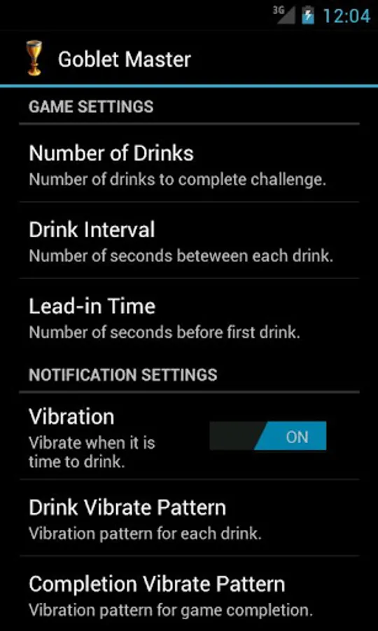 A simple timer for drinking games like Power Hour or Century Club. Allows you to set any number of drinks and any interval. Also allows you to customize notification sound and vibration to ensure you never miss a drink.