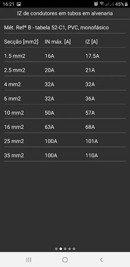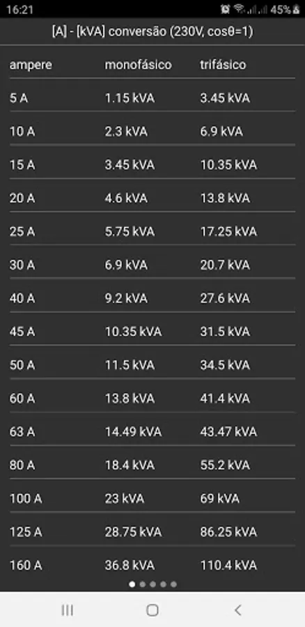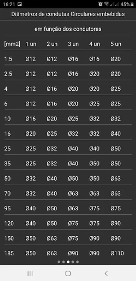 Electricity charts with Amps to kVA convertions, current carrying capacity (Amps) of cables, circular duct diameters according to the cables quantity and diameters.