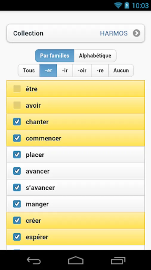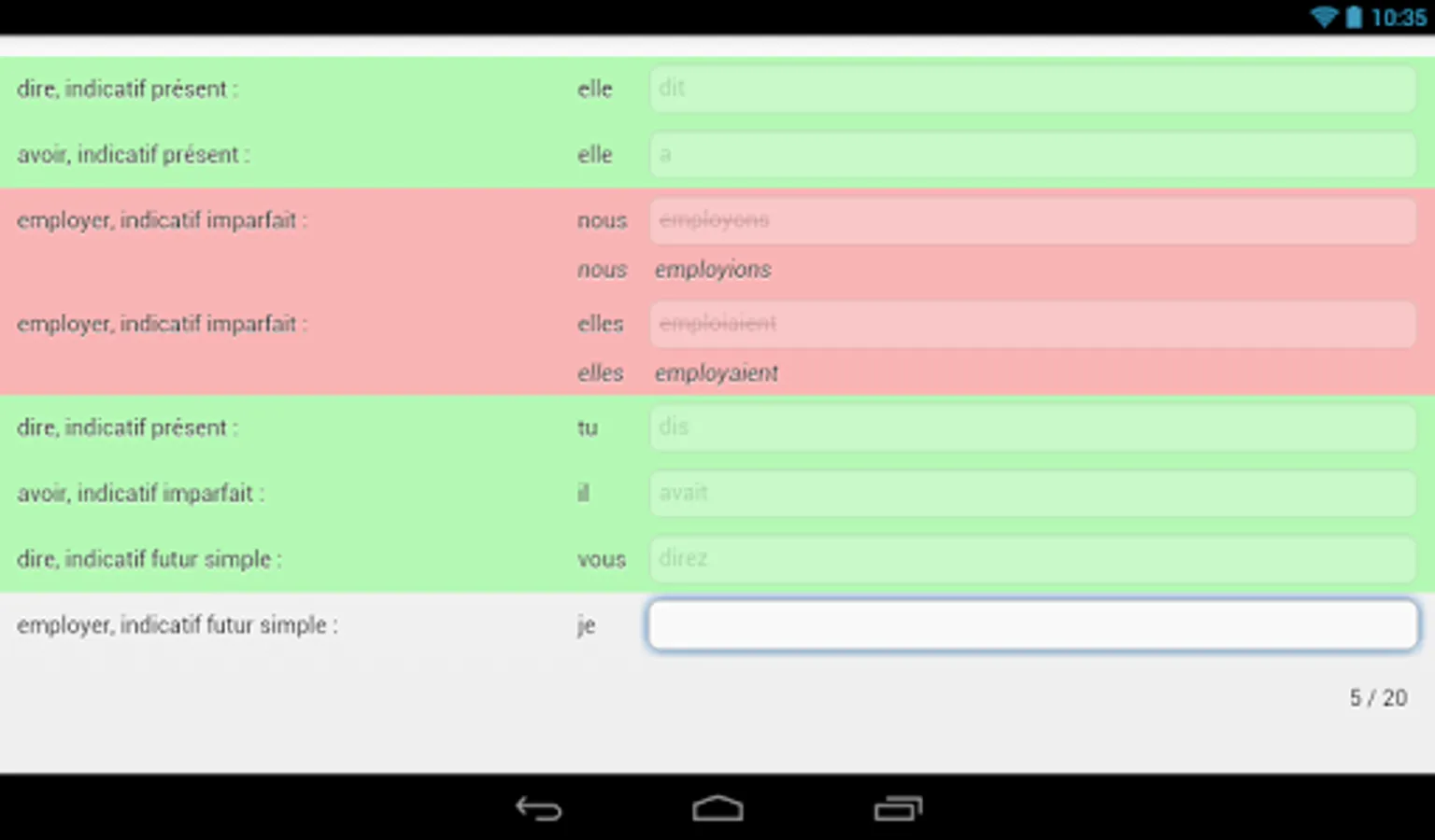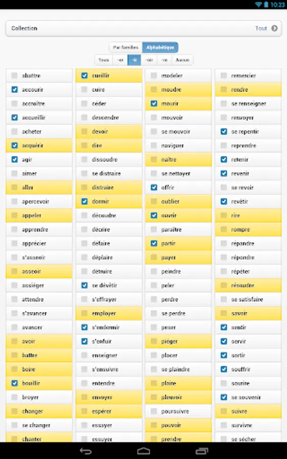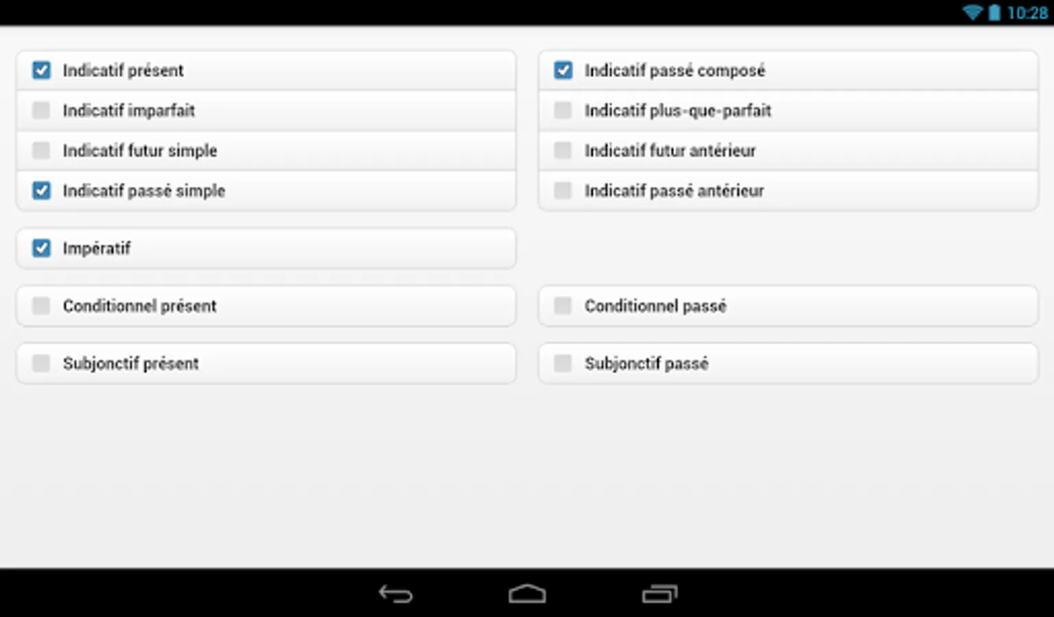 Fully customizable, this application allows you to select verbs, time and number of questions to practice. In addition to the models verbs, the user can also choose other verbs in the same combination and reflexive verbs.