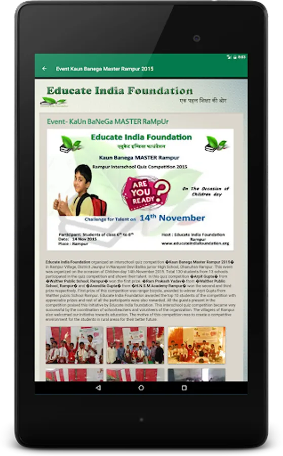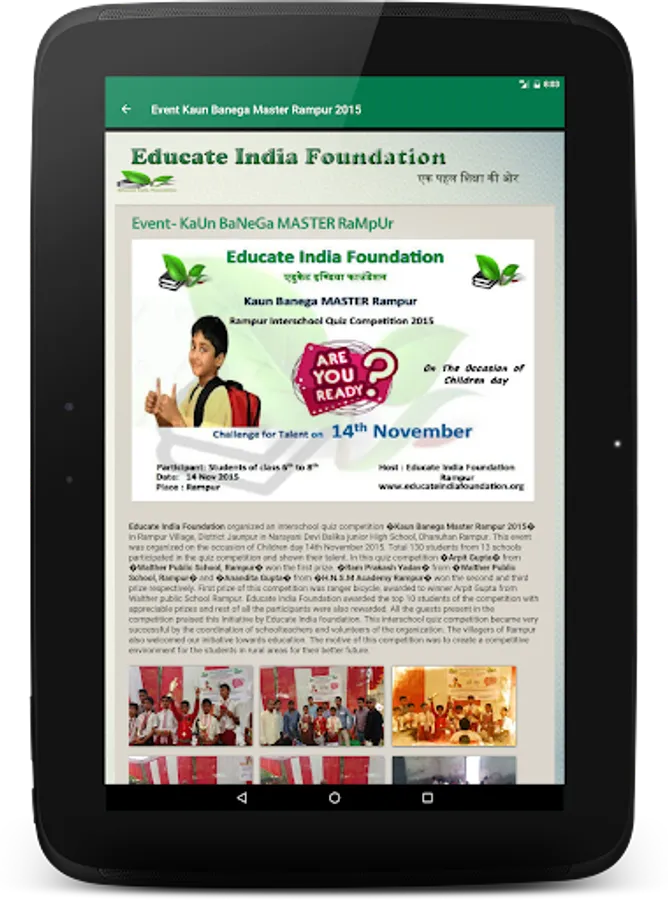 Educate India Foundation is a non profitable trust organization which works for the welfare of the society. Some people in our society want to help the needy person but they couldn't do that because the reason is that they think “to whom to help and how to help. We work as an intermediate between the helpers and needy person. This organization is here not for only one issue or the other but for resolving the things, which can change the life of poor and underprivileged people of our country. Especially our aim is to work for underprivileged scholars who have potential but they are not able to complete their education. We also work for the welfare of rural areas, villages, welfare of people, waste management and conserve the environment in which we live.