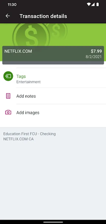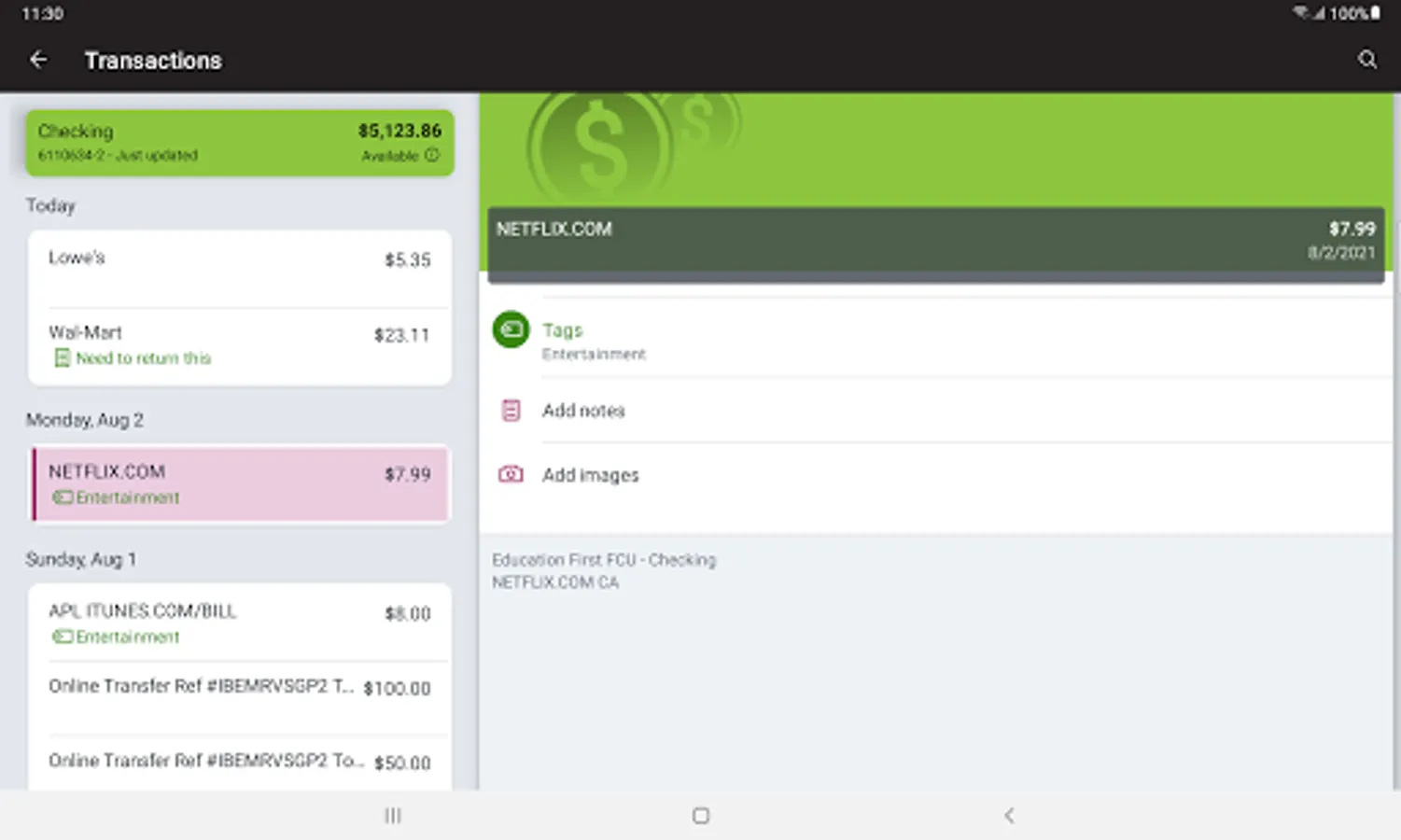 Keep your transactions organized by allowing you to add tags, notes and photos of receipts and checks.