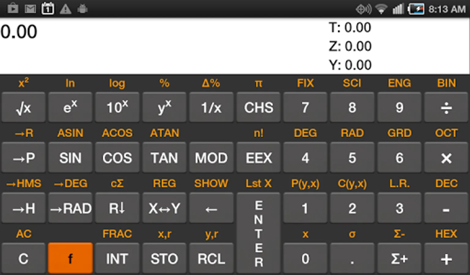 If you want to "test drive" a similar calculator before purchasing, try the free "RpnCalc" scientific calculator.