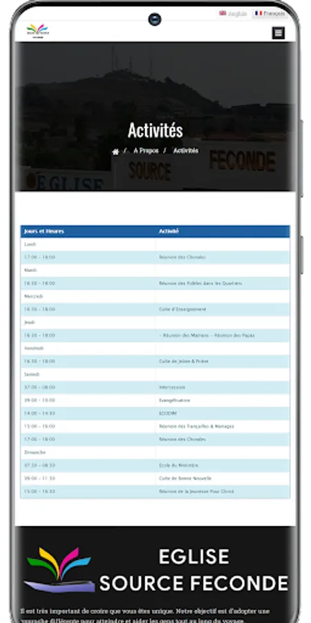 With the Eglise Source Féconde application, you can consult live services, keep abreast of recent messages and find out more about upcoming events. In addition, you can follow live Christian TV channels (EMCI TV, 3ABN and DIEUTV) and radio stations (Radio France Évangile, RFE Zone Enfants, and CBN Praise).