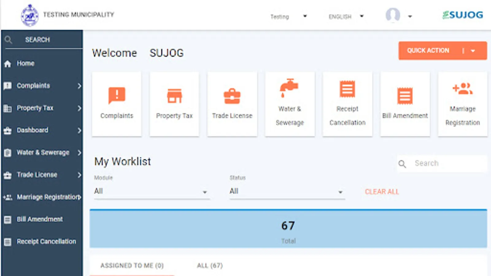 The system (System) operationalized under the SUJOG (SUJOG) initiative of the Housing & Urban Development Department (H&UDD), Government of Odisha, comprises of a web-based Portal (Portal) and a Mobile App (Mobile App) for Authorized Officials of the Municipalities, State including their associated agencies and Citizens of Odisha. The System aims to provide enhanced quality of urban services to citizens through online/single window service delivery channel and ensure accessible, convenient, transparent and timely delivery of services.