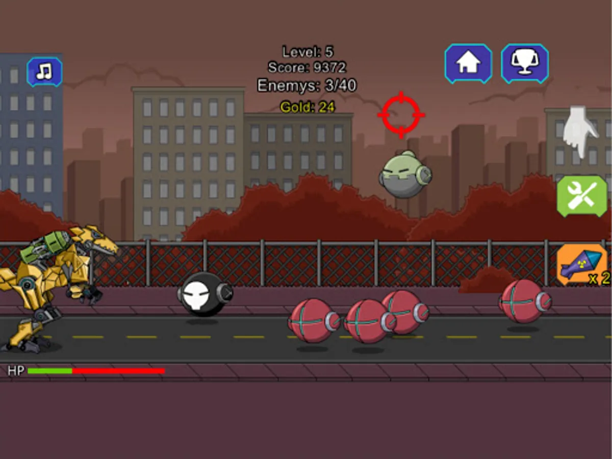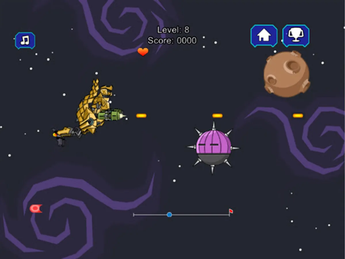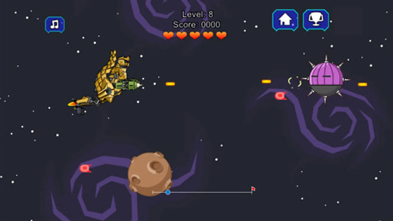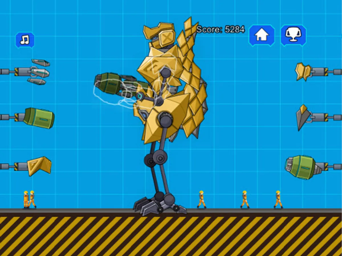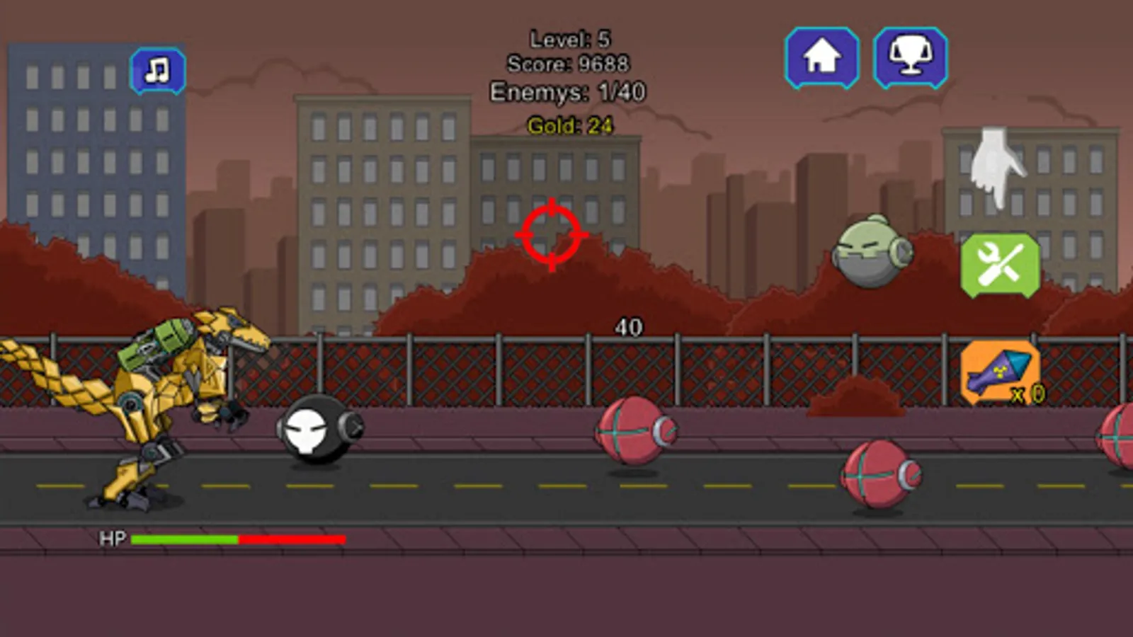 Your Mission is create a robot Megalosaurus dion, defense the alien robot. Collect golds, upgrade your robot dinosaur, get more power and higer speed. Get into space, destroy all alien robots, be careful the dangerous meteorite.