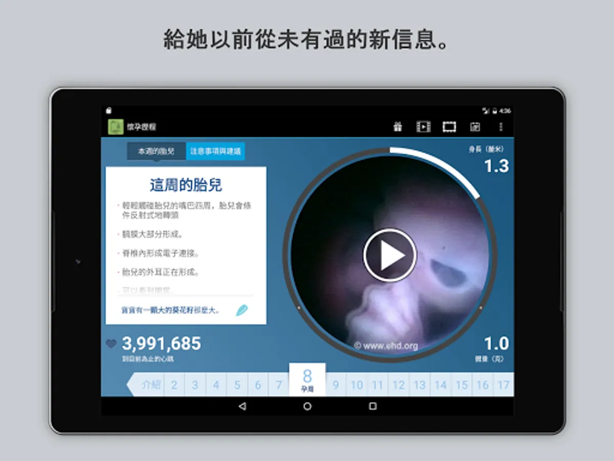 This free app includes live human embryos and early fetuses rare images of fetal development during pregnancy and fetal indicators weekly summary recording. Valuable information you provide care for every pregnant woman will lead pregnant women to make healthier choices, and to promote contact between the mother and fetus.