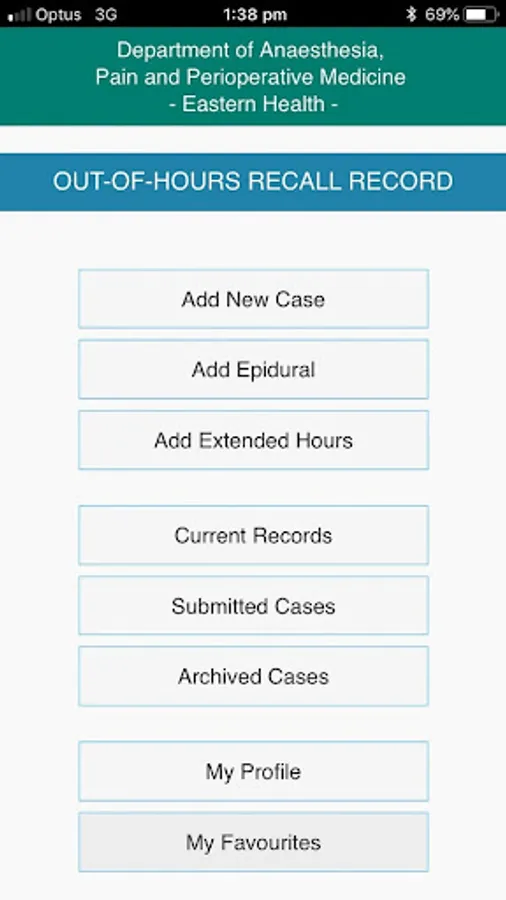 Eastern Health Department of Anaesthesia Out-of-Hours Recall Record