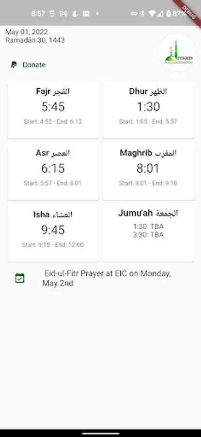 This app will provide current Iqamah information at Evergreen Islamic Center. In addition, users can receive push notifications when prayer time changes.