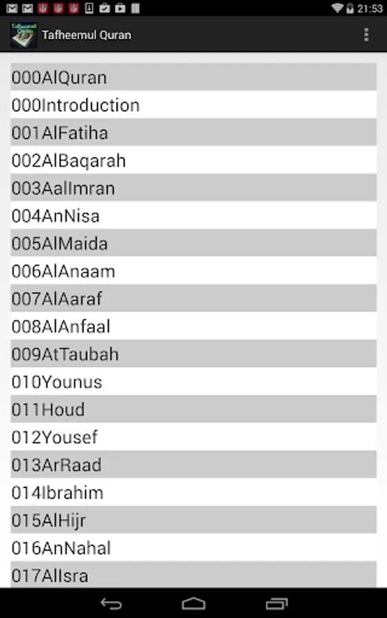 •Rearrangement of tafseer to make it available next to the Ayats.