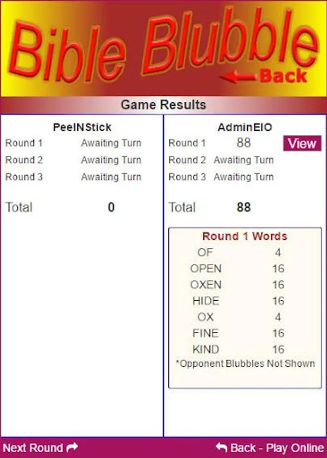 It's the word game that tests your ability to create words from the KJV Bible. Try a single player game or challenge an opponent online.