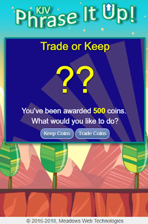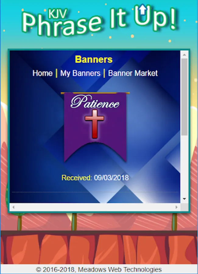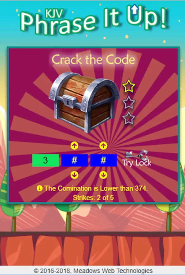 Test your knowledge of the KJV Bible by solving phrases. Spin the wheel to rack up on talent coins. You might even get invited to a bonus game that allows you crack the combination of a treasure chest. Use your coins to buy banners. Be careful as coins come and go quickly. Above all, enjoy hours of Bible-based fun. This Bible-based word game is packed with a database of 1245 phrases and growing.