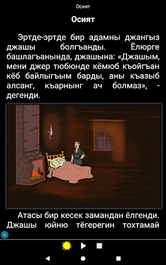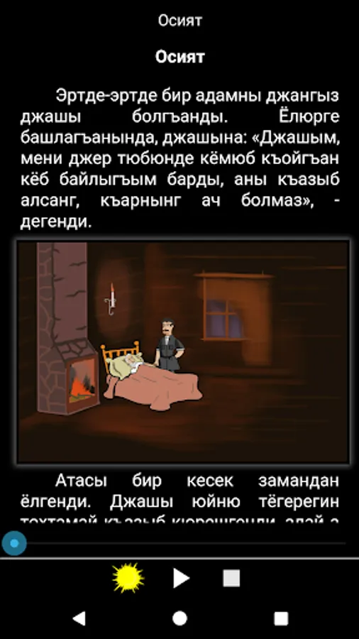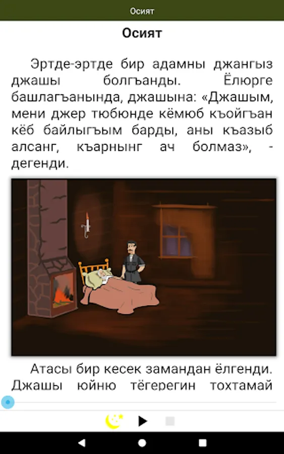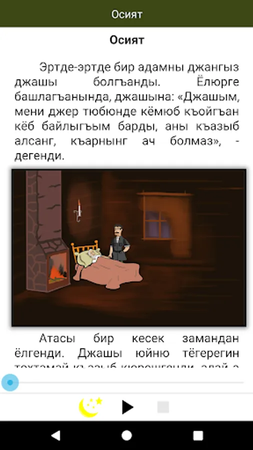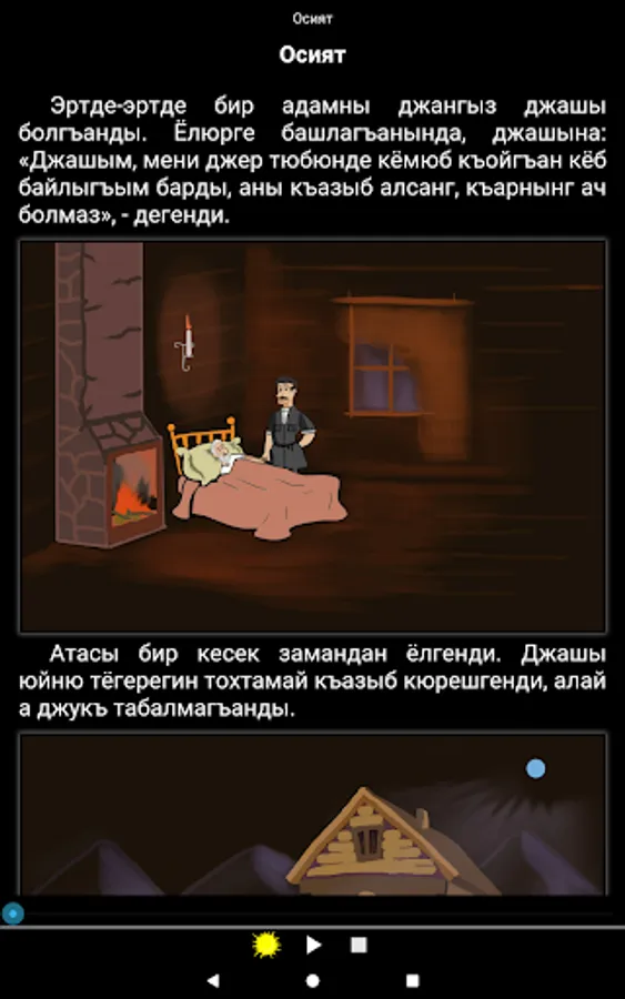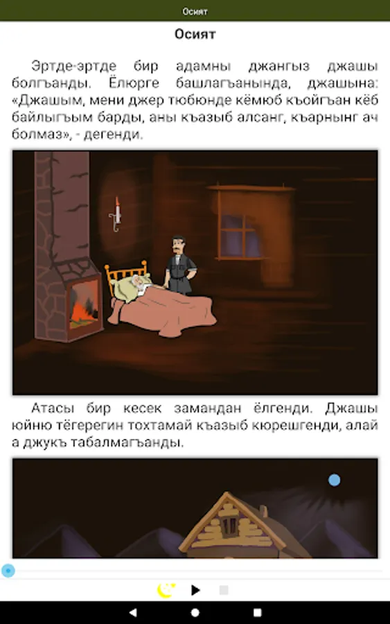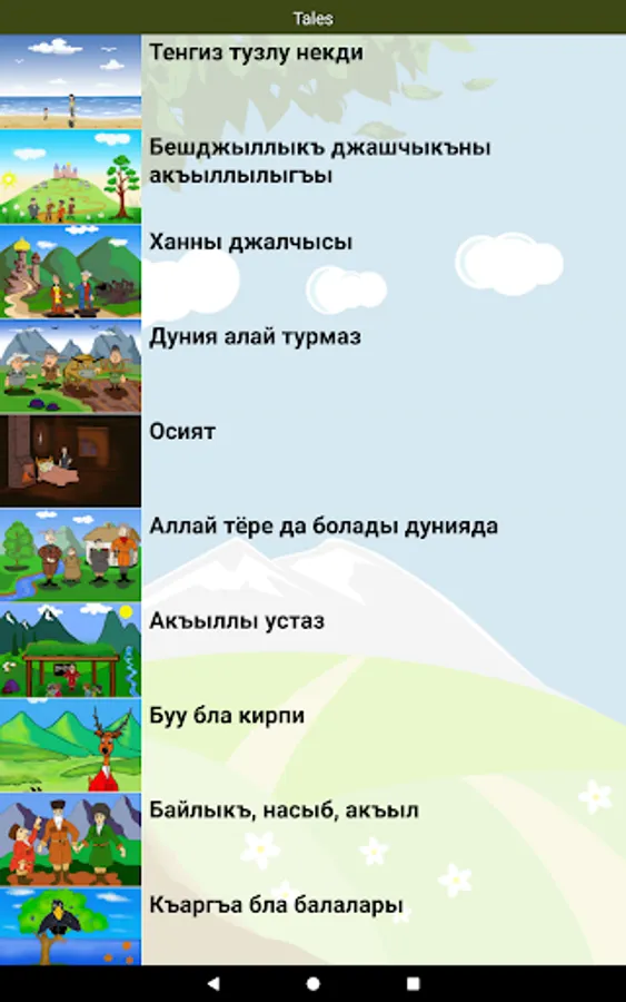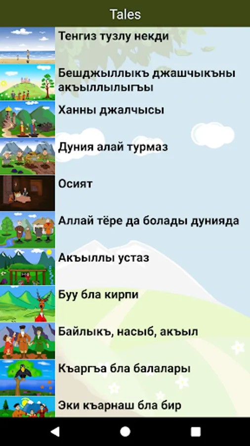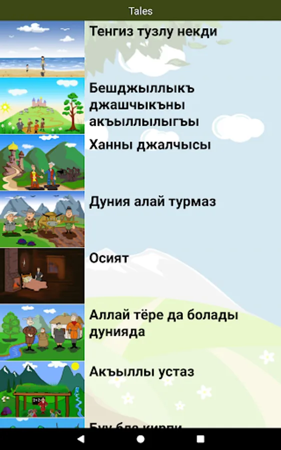 Karachay-Balkar folk fairy tales for all ages. The text is narrated by a professional and comes with colorful illustrations describing the events on each page.