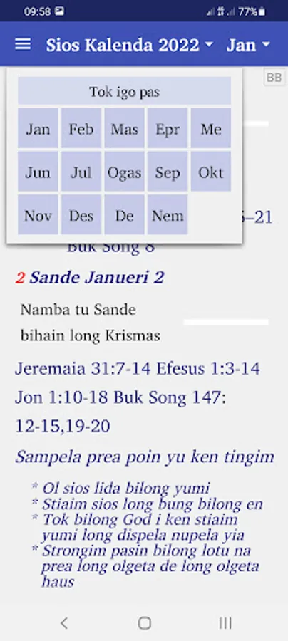 Amamas brings together the Bible with the ELCPNG “Sios Kalenda” and the “Amamas Wantaim Na Lotu Long God” worship book. The live links in the App make it easy to find and read the daily Sios Kalenda readings.