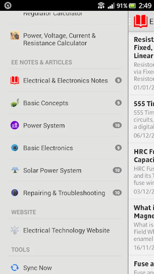 Note: When you installed the "Electrical Technology" App, Then please Synchronize in the setting. So, It will get the latest posts from the site.