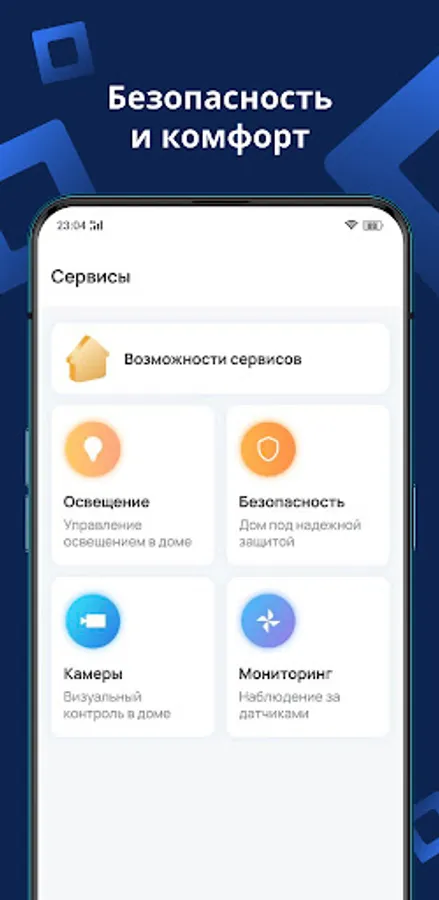 Monitoring and control. Stay on top of what's happening - monitor and control smart devices in real time. If it gets hot or cold, the smart home will tell you about it. And if there's a flood, you'll know before he can do any big trouble.
