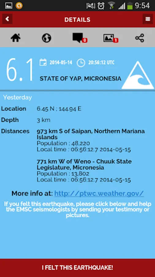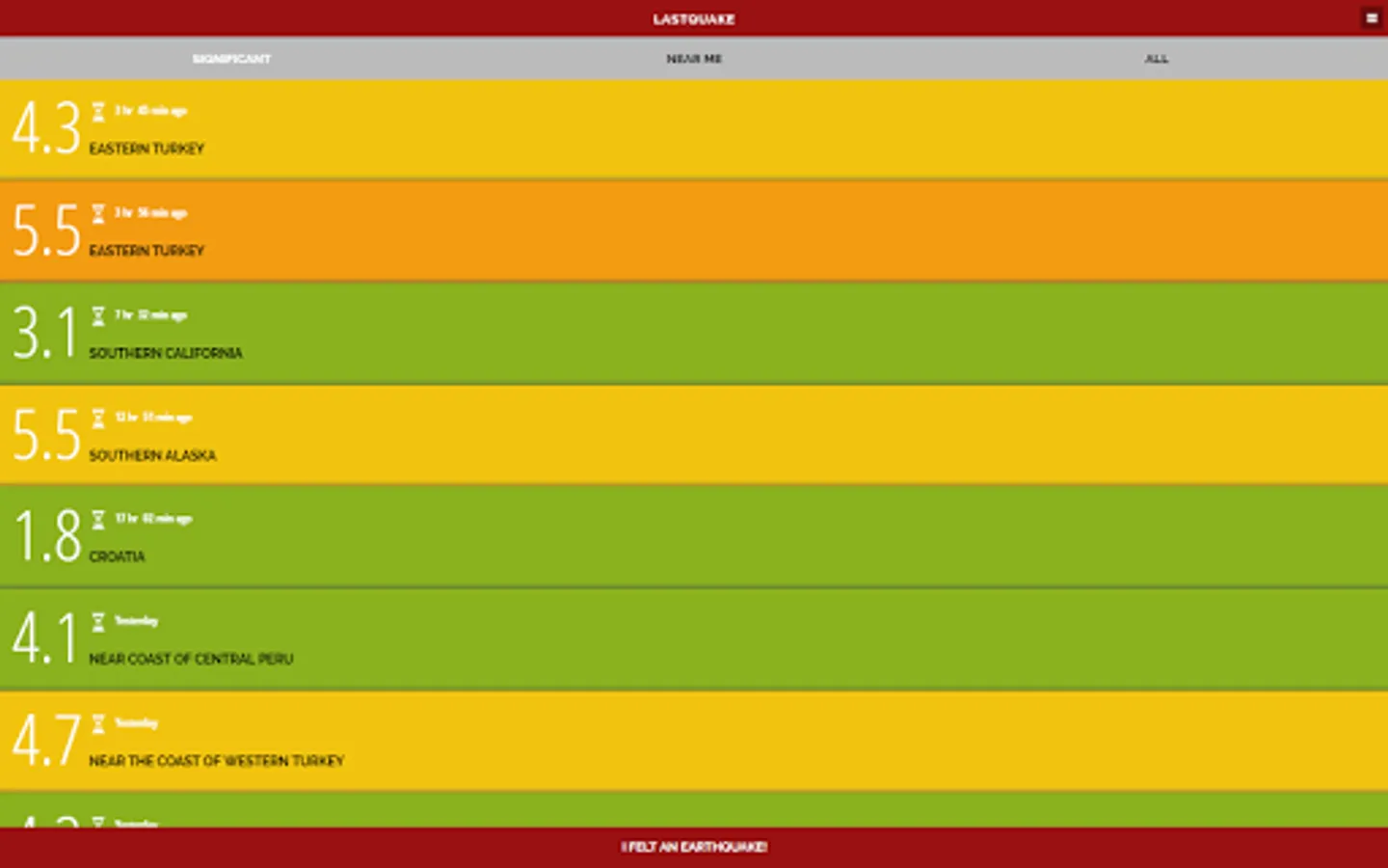 ∘ Customizable notifications (destructive earthquakes, earthquakes near you)