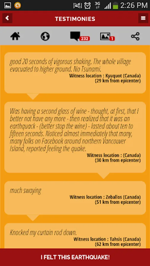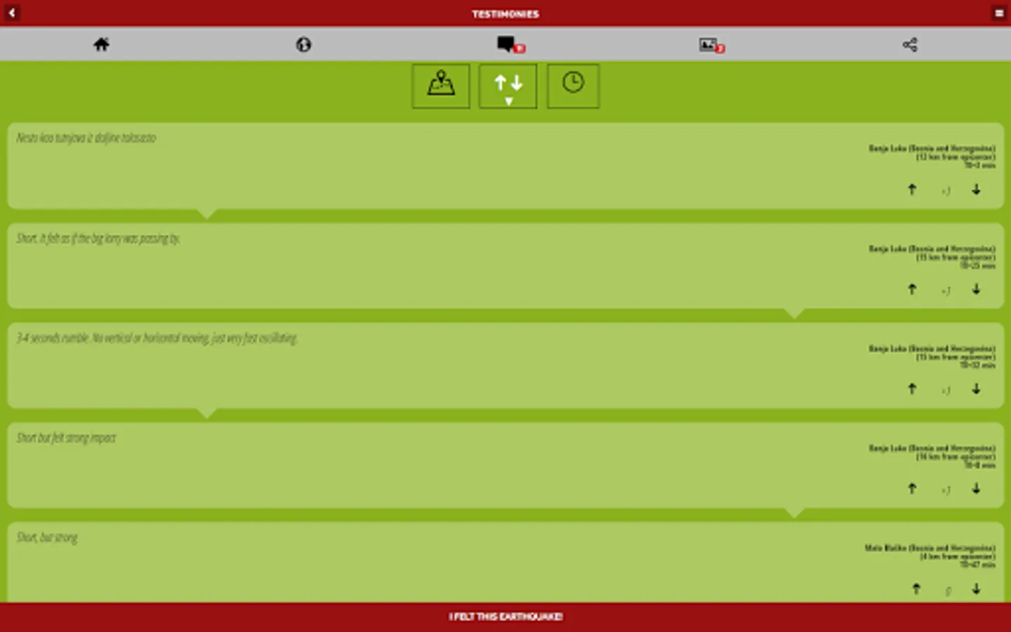 ∘ Earthquake witnesses, who are the first to feel an earthquake, hence the first informed that an event is happening.