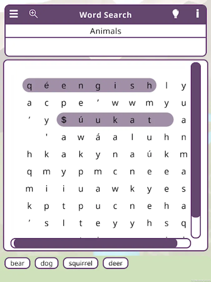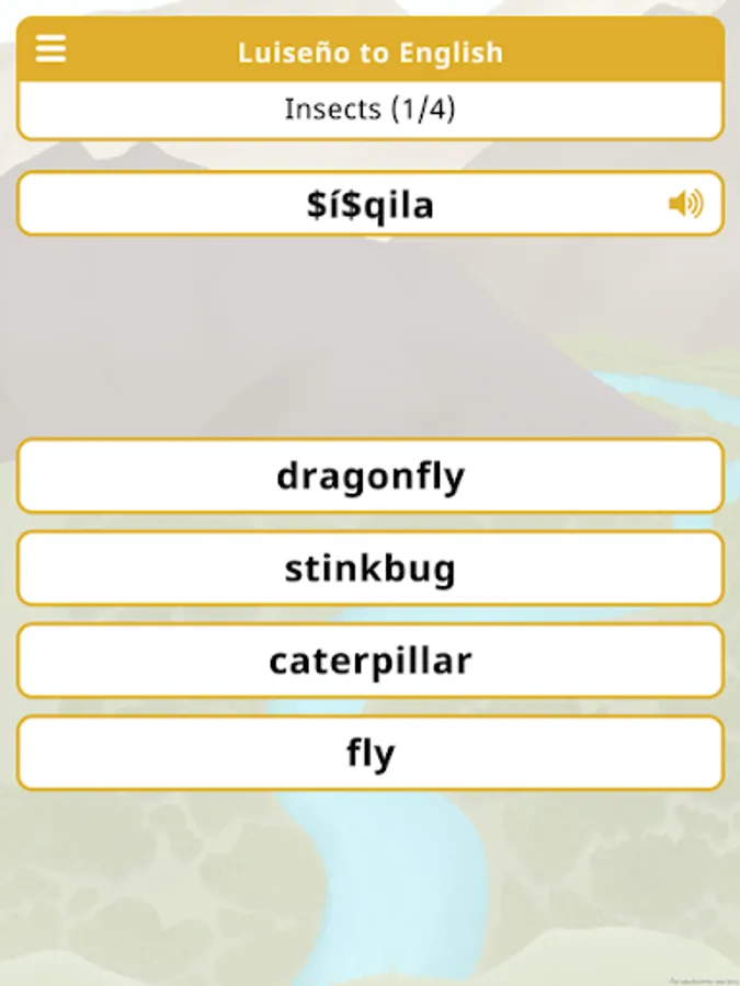 Build your Luiseño vocabulary with the Luiseño Vocab Builder game for your Android phone or tablet. Quiz yourself every day to learn different categories – animals, food, drinks, and more! The app includes:
