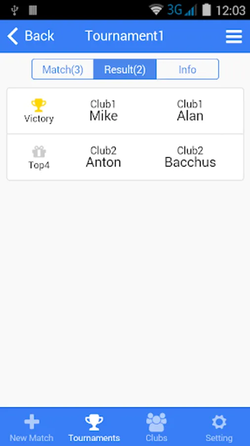 You can record tournaments matches and results like 'Victory' , 'Top8'.