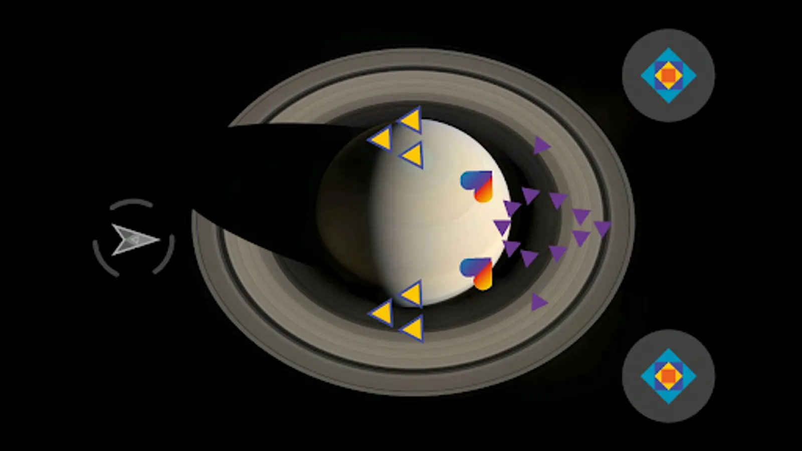 Hearts are not enemies, you must not destroy them, otherwise you perish with them. Your ship repels them and they absorb the energy of other objects in collisions, slowing them down.
