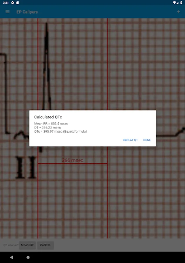 EP Calipers provides electronic calipers for measuring intervals on images of electrocardiograms (ECGs) or electrophysiologic recordings. In the electrophysiology lab electronic calipers are included as part of the recording system. EP Calipers provides similar electronic calipers for use on your Android phone or tablet. The electronic calipers of EP Calipers are more accurate, easier to use, and less dangerous than mechanical calipers (no sharp points!). EP Calipers can open and analyze ECGs in multiple graphics formats and PDFs, including AliveCorâ„¢ mobile ECG recordings. EP Calipers includes time, amplitude, angle calipers and a "Brugadometer" useful for evaluating ECGs for Brugada syndrome.