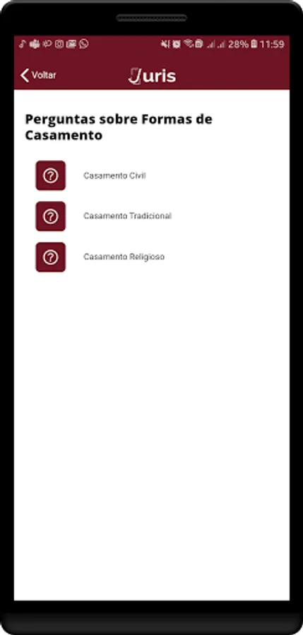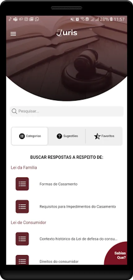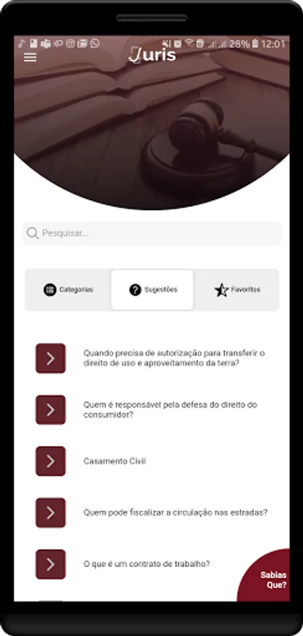 Juris responds to a great gap in the knowledge of the country's legal information. Since mobile devices are already familiar to the population, whether urban or rural, making this legal information available in a very well-segmented and easy-to-consume manner will make it possible for people to have “in hand” the tools they need to be able to get to know and defend your rights.